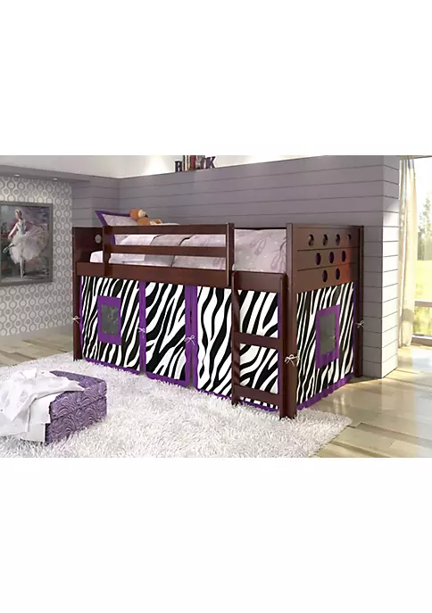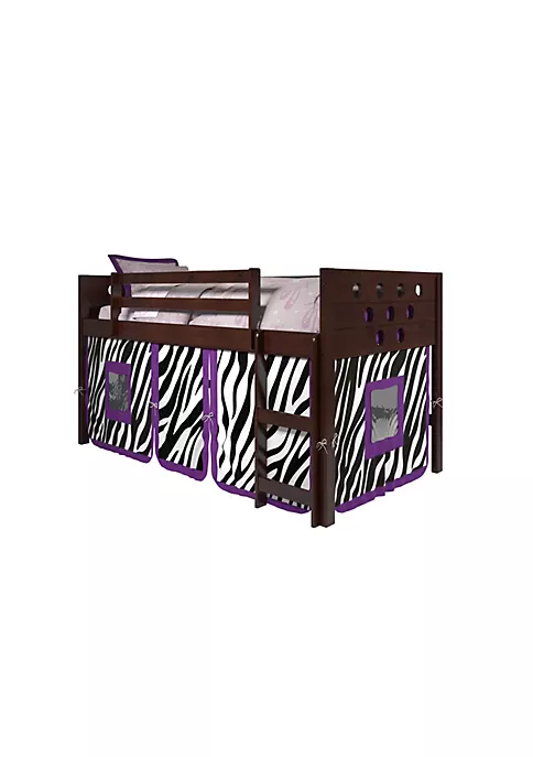 Circles low loft bed makes a small room fun, with large under bed area for storage or play. The Circles design can make a room easy to decorate and give it a warm inviting look. Blue tent fabric makes a fun play area or the area below bed can be used to store things and Blue tent covers them up.
