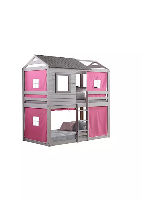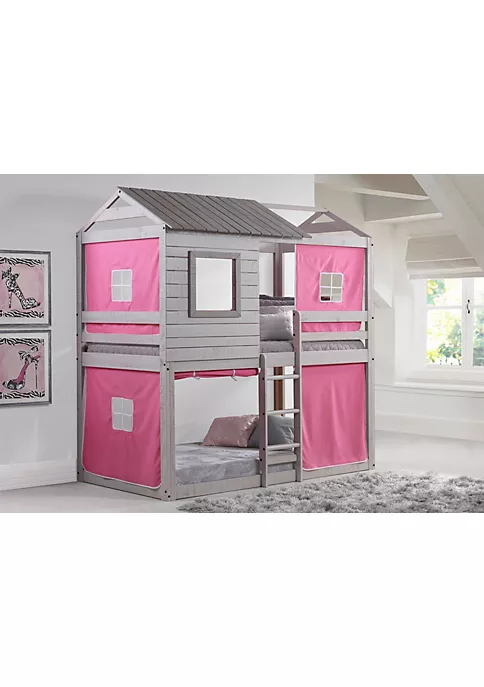 Our Twin over Twin Deer blind has a rich rustic finish to enhance any room decor. The fun pink tent fabric makes for a cozy area for resting or a relaxing quiet corner for reading and studying. This bed also has a mattress ready slat system, eliminating the need for a Bunkie board.