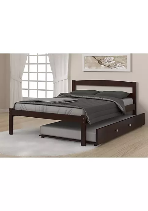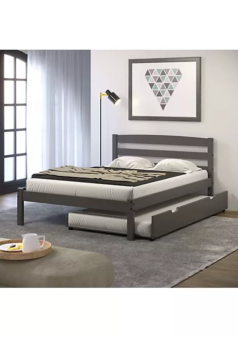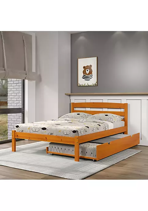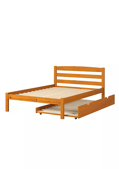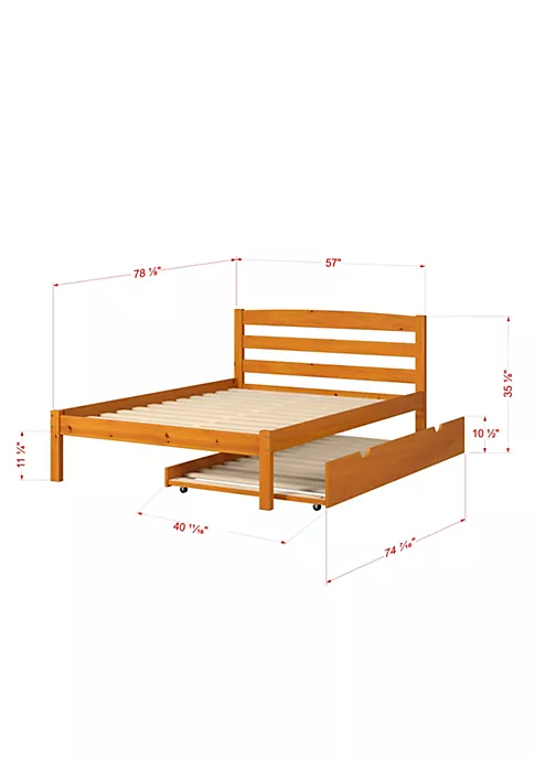 This Econo Bed has a simple style that will match any decor. The solid pine wood construction gives this bed superior durability that is sure to last for years to come. This Full bed comes with a mattress ready slat system eliminating the need for box springs. The included twin trundle is perfect for guests.