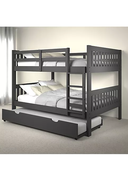 This solid pine bunkbed is sure to be the center of childhood memories. The dark grey color pairs well with any decor. The classic mission style looks great in any room. Also included is a twin trundle for added sleeping options.