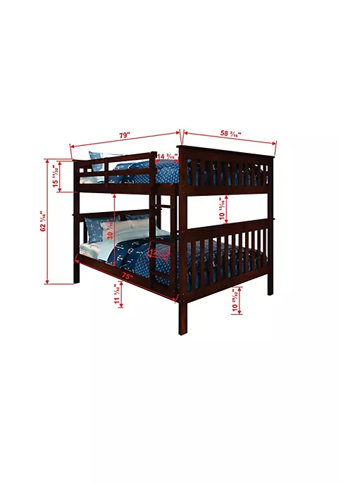 Our Full Over Full Mission style bunkbed with Espresso finish will add warmth to any bedroom. This bed comes with a mattress ready slat system, so no Bunkie board is required.