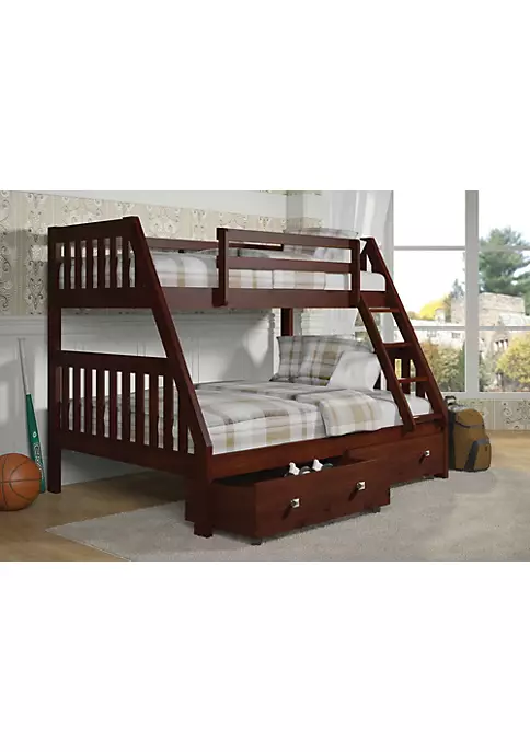 The classic mission design of this twin over full bed has a grown-up appeal for your maturing child. The dark cappuccino finish pairs well with any decor. The solid wood construction of this bunkbed provides outstanding durability. Also included are dual storage drawers for added space saving options.