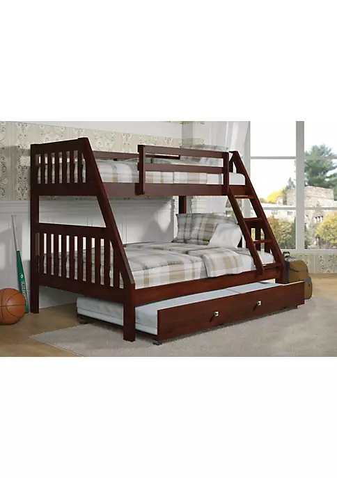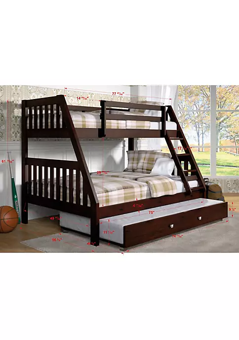 The classic mission design of this twin over full bed has a grown-up appeal for your maturing child. The dark cappuccino finish pairs well with any decor. The solid wood construction of this bunkbed provides outstanding durability. Also included is a twin trundle for added sleeping options.