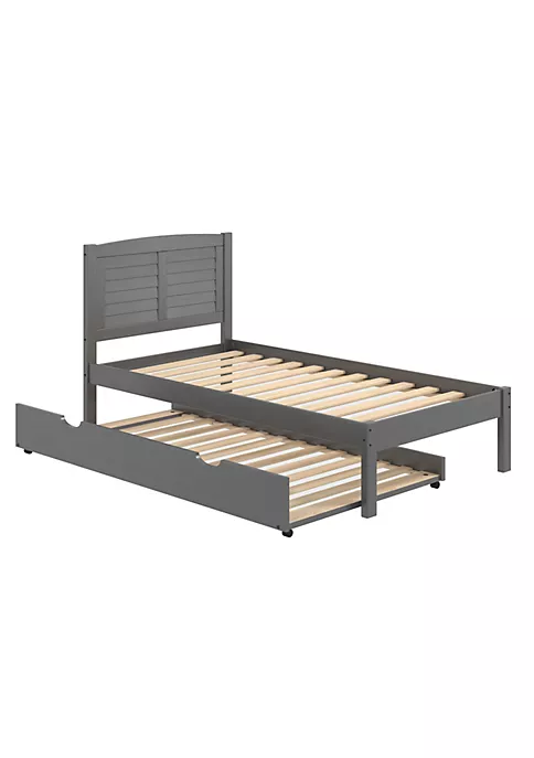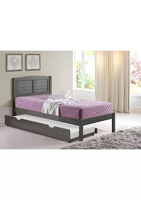 Our Louver platform bed is the perfect mix of contemporary and traditional build with an Antique Grey finish that easily matches your home decor. The solid pine wood is constructed to last for years. The Included Twin Pullout Trundle adds additional sleeping space.