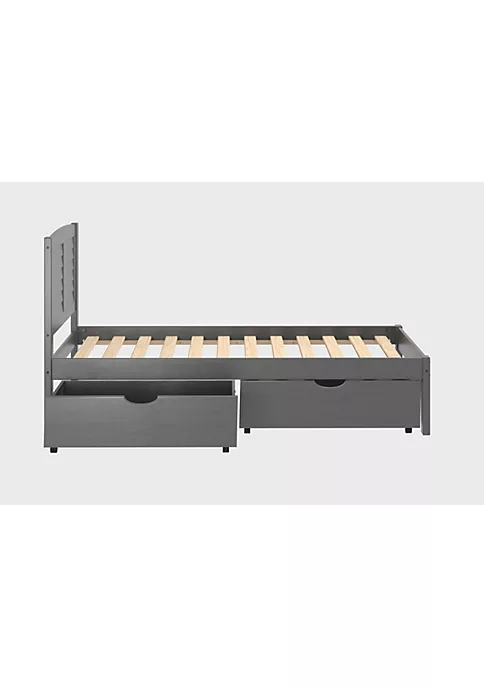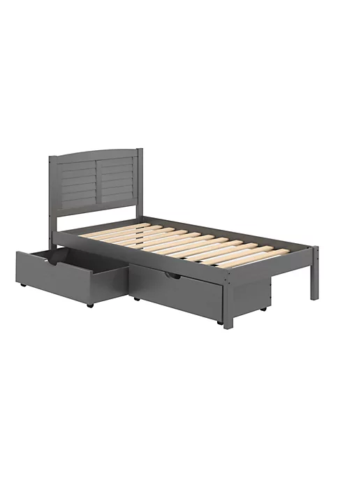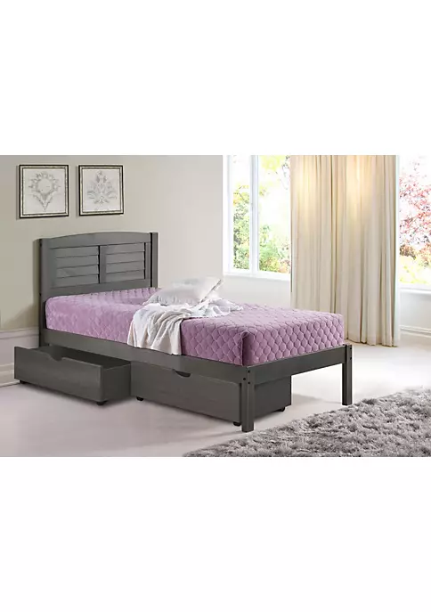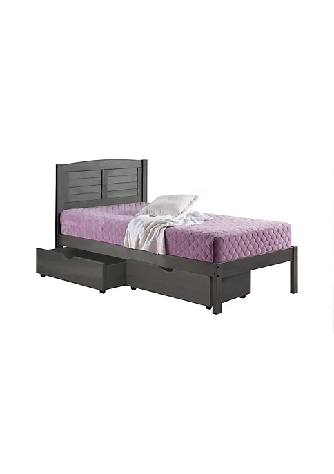 Our Louver platform bed is the perfect mix of contemporary and traditional build with an Antique Grey finish that easily matches your home decor. The solid pine wood is constructed to last for years. The included Dual Underbed Drawers add additional storage space while moving easily on caster wheels.