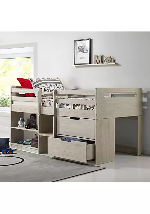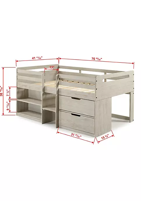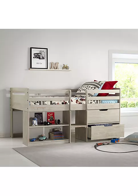 The compact design of this bed makes it a perfect fit for rooms that could use a little more space. This loft includes extra storage options for toys or clothes. The solid pine craftsmanship gives this bed superior durability.