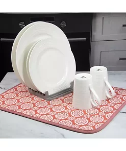 Grand Fusion Housewares Grand Fusion Reversible Dish Drying Mats 2 Pack, Coral