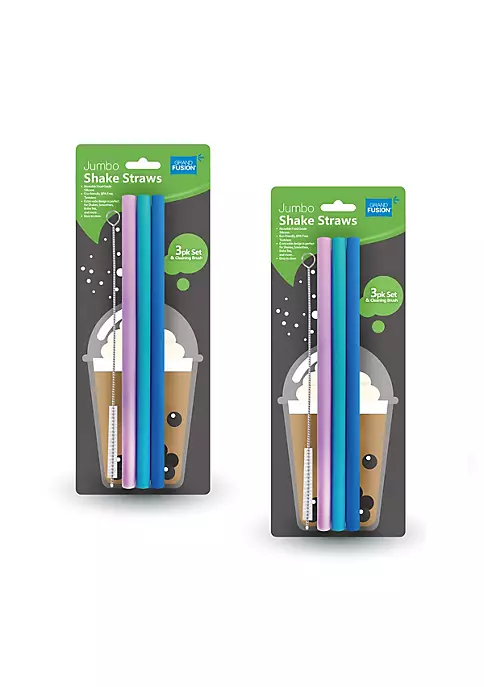 Grand Fusion Housewares Grand Fusion Jumbo Size Silicone Shake Straws, 6 Straws & 2 Brushes