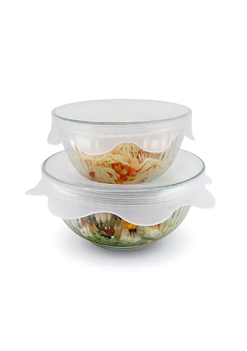 2 DIFFERENT SIZES FIT EVEN LARGE PLATES OR BOWLS. Circle cover wraps are 6.3 and 8.7 inches across, and can stretch to 8.5 and 11.8 if needed. Great for transporting food or snacks to potluck parties