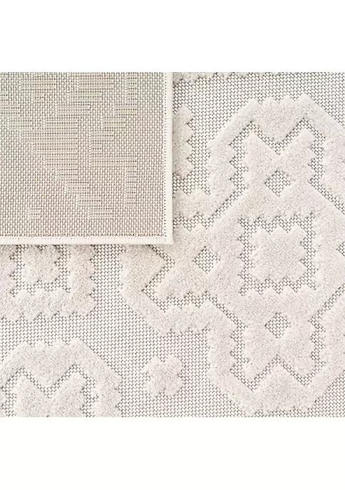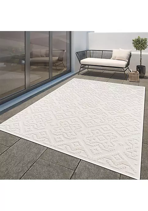 Paco Home In- & Outdoor Rug Tropical Palm Leaf Design for Patio in Green Beige – 5’3″ x 7’7″