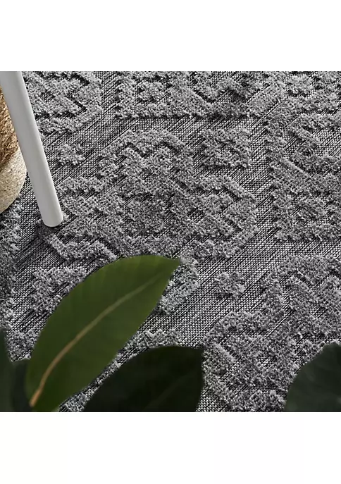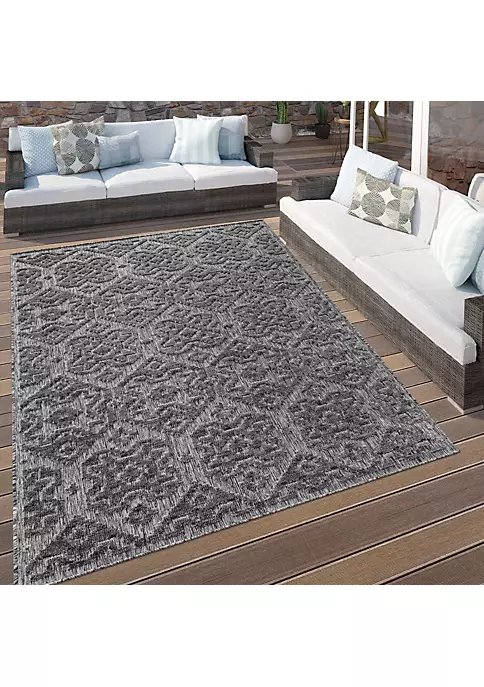 Paco Home In- & Outdoor Rug Tropical Palm Leaf Design for Patio in Green Beige – 5’3″ x 7’7″