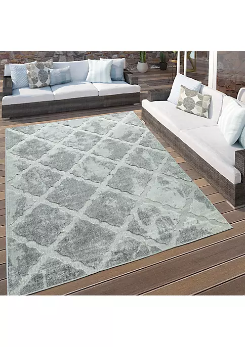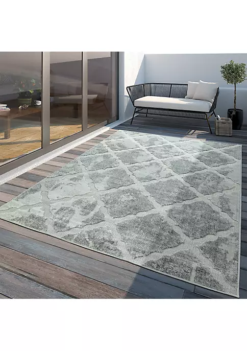 Paco Home In- & Outdoor Rug Tropical Palm Leaf Design for Patio in Green Beige – 5’3″ x 7’7″