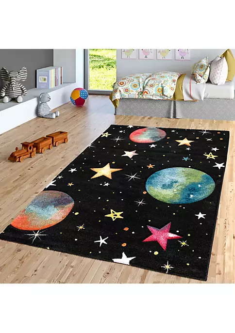 Paco Home Kids Space Rug with Planet Earth and Stars in Black – 2’8″ x 4’11”